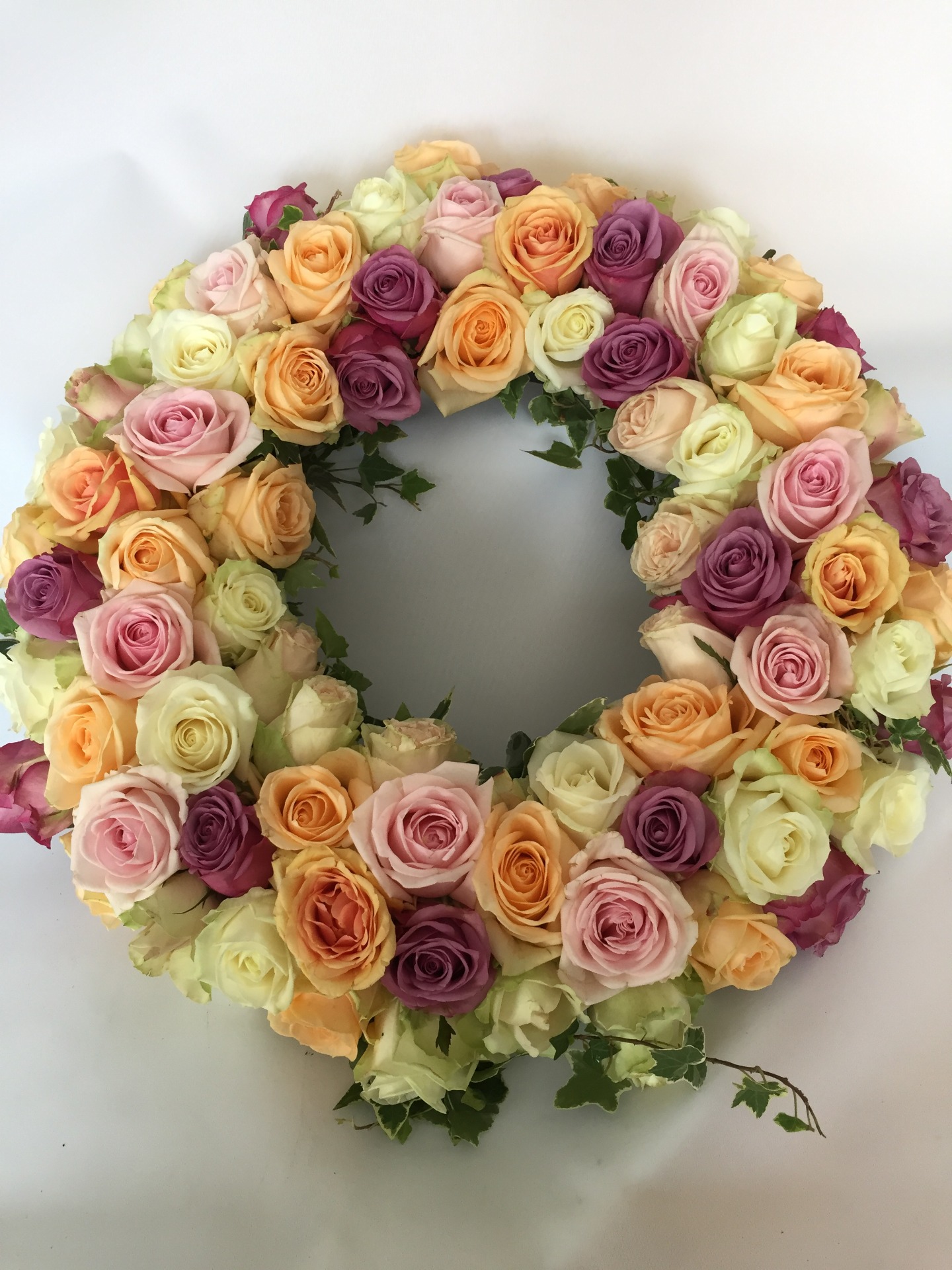 Bladstomme eller en helt fylld blomsterring kransar finns i alla storlekar och färger